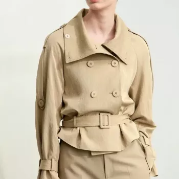 Trendy Women’s Double Breasted Short Trench Coat with Belt