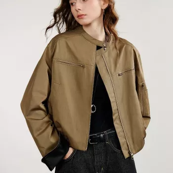 Women’s Retro Contrast Color Jacket with Stand Collar for Autumn Street Style